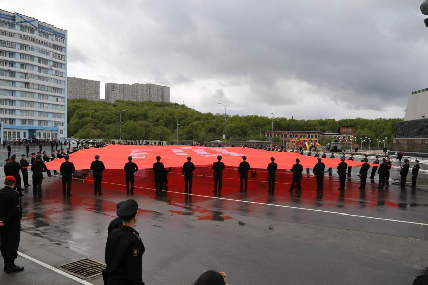 - Глубоко символично, что самая большая в мире копия Знамени Победы передается на вечное хранение Североморску - столице Северного флота, городу, в котором мужество и героизм защитников Советского Заполярья стали основой воспитания нынешнего поколения моряков-североморцев, - отметил на торжественной церемонии командующий Северным флотом вице-адмирал Николай Евменов.