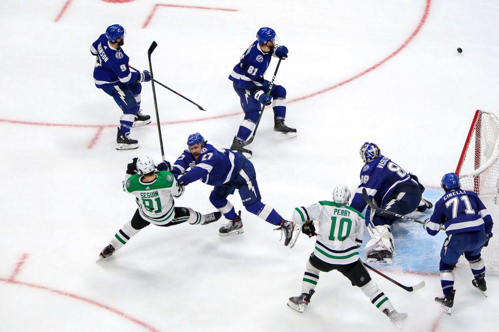 "Тампа-Бэй" уже в первом периоде встречи отправила соперника в нокдаун. Брейден Пойнт, Ондржей Палат и Кевин Шаттенкирк трижды огорчили Антона Худобина, причем в первых двух шайбах партнерам ассистировал Никита Кучеров.