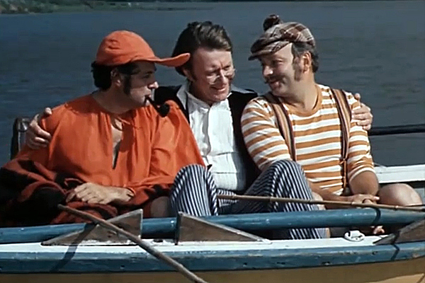 Трое в лодке, а также собака. Обратимся к знаменитой советской экранизации повести Джерома К. Джерома. Рост Андрея Миронова составлял 1.82 м, рост Александра Ширвиндта – 1.83 м, рост Михаила Державина – 1.65 м. Согласно стандарту, рост фокстерьера доходит до 40 сантиметров. Учтём также, что роль Монморенси в классическом советском фильме исполнили две собаки – "Герцог" и "Грех". Итого: общий рост исполнителей главных ролей комедии составляет 6.10 м. Именно такую высоту взял Сергей Бубка в Мальме в 1991 году.