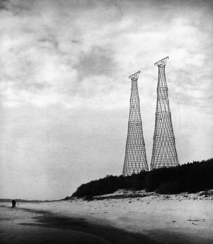 6. Башня на Оке. В 1929 году на низком берегу Оки между Богородском и Дзержинском по проекту Шухова были установлены единственные в мире многосекционные гиперболоидные башни-опоры ЛЭП. Из трех пар конструкций, которые поддерживали провода, до наших дней сохранилась только одна.