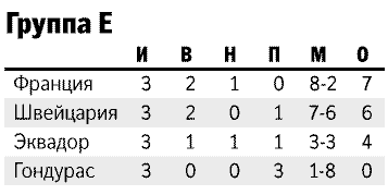 Конечно, команду Дидье Дешама устраивала и ничья в заключительном матче против Эквадора. Это южноамериканцам было необходимо кровь из носу побеждать, чтобы надеяться на продолжение борьбы на турнире. И, если по-честному, Эквадор вполне наиграл на победу в противостоянии с Францией. Чемпионы мира-98 превратили потенциально яркую игру в откровенную "сушку", с первых минут дав понять, что их более чем устроит одно очко. И вместо зажигательного футбола болельщики увидели нудное перемещение мяча по полю игроками в белых майках. Хотя немало этому поспособствовал и тот факт, что на поле в составе сборной Франции вышли футболисты крепкого запаса. Но даже Карим Бензема, участвовавший в матче, не использовал возможность выйти в лидеры гонки бомбардиров.