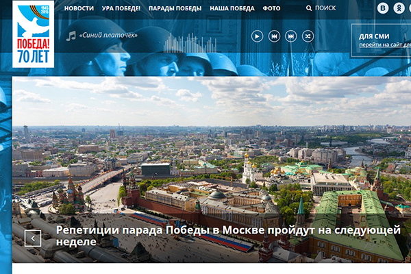 На сайте, доступном по адресу www.may9.ru, можно найти информацию о подготовке празднования 70-летия победы во всех регионах страны, прослушать новостные сводки Совинформбюро 1945 года, ознакомиться с архивными фотографиями и кинохроникой времен Великой Отечественной войны.