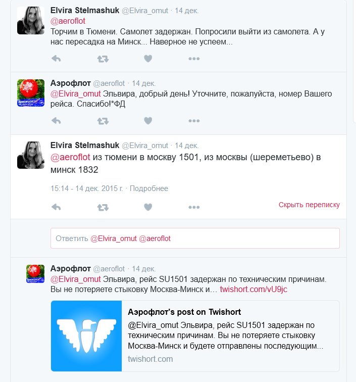 А вот, например, как происходит общение с пассажирами на тему опозданий на стыковочные рейсы у "Аэрофлота":