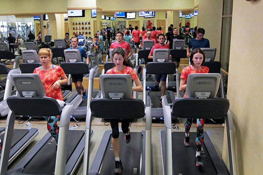 Первая часть тренировки проходила на беговой дорожке под руководством тренера Александра, многократного марафонца и триатлета. Мы бежали по ровной поверхности и имитировали подъем в горку, разбавляя беговые интервалы высокими захлестами голени и бедра и другими упражнениями. После 20 минут такой интенсивной тренировки организм пришел в тонус. Оказалось, что бег, который дался не без труда, - это только разминка перед функциональной тренировкой!