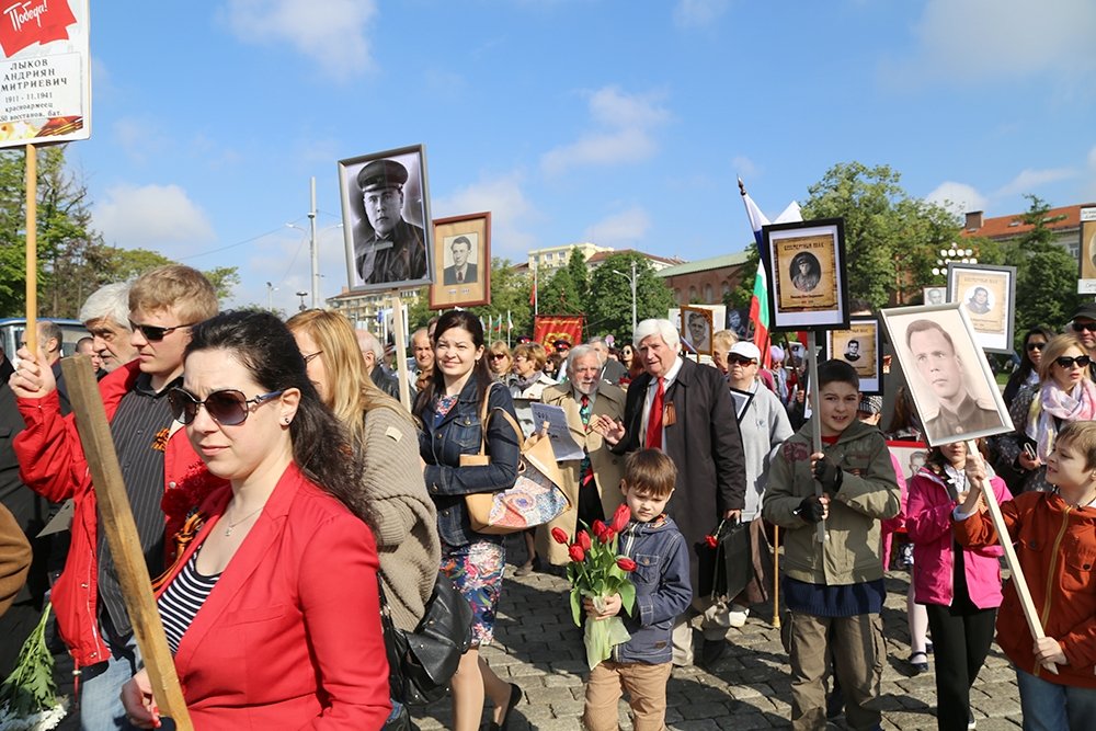 Только в болгарской столице несколько тысяч человек приняли участие в торжественной акции "Бессмертный полк", которая впервые и с неожиданным размахом проходит в республике. Еще больше народу собралось у монумента советским воинам-освободителям. Помимо болгар, цветы и венки к мемориалу возложили послы и представители посольств России, Белоруссии, Казахстана, Армении, Венесуэлы.