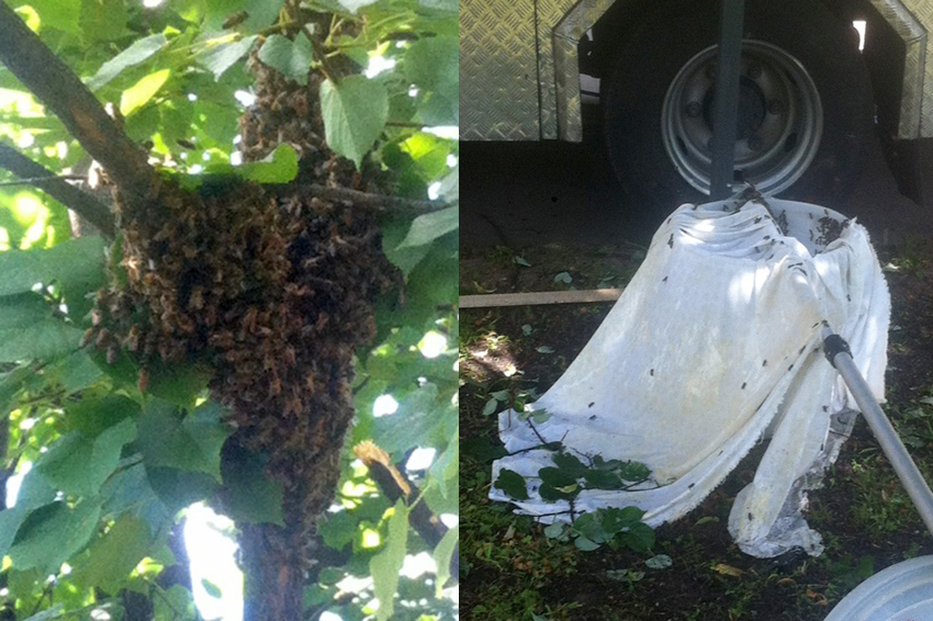 Как сообщили в главном столичном управлении МЧС, прибыв на место, спасатели обнаружили на дереве пчелиный рой весом около 3-4 килограммов. Насекомые облепили ствол дерева на высоте примерно 6 метров.