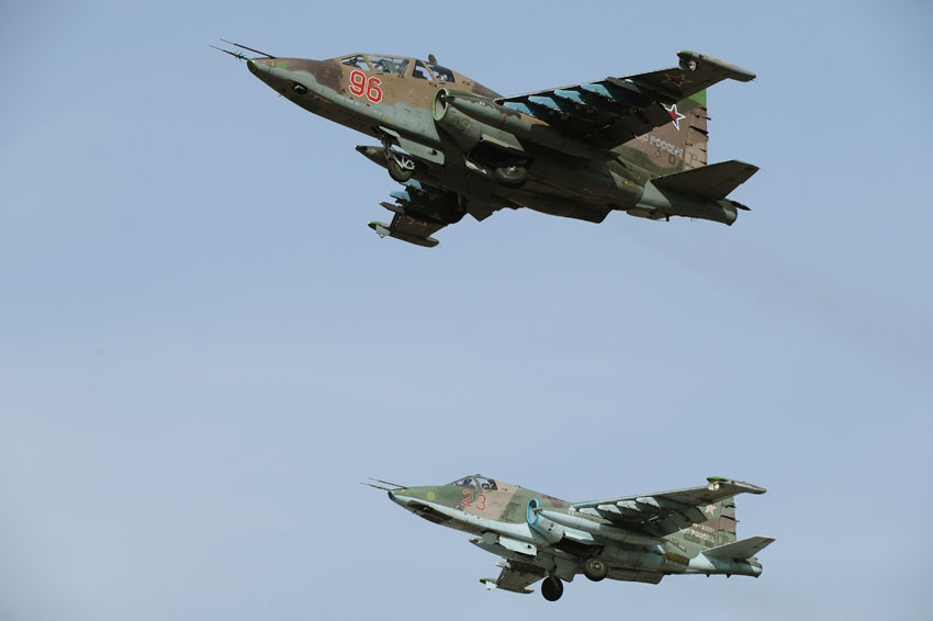 Экипажи штурмовой авиации объединенной российской военной базы Кант приступили к поиску и уничтожению мобильных групп условных бандформирований, действующих в высокогорьях Киргизской Республики.