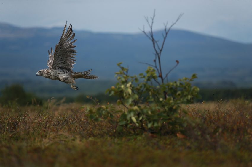 Кречет - хищная птица семейства соколиных. Вес взрослого самца достигает одного килограмма, самки - двух. Вид занесен в Красную книгу Камчатки, России и Красный список Международного союза охраны природы. Из-за браконьеров и индустриализации мест обитания популяция птиц стремительно сокращается. На Камчатке кречет обитает на охраняемых природных территориях: в Кроноцком и Корякском государственных заповедниках. Подсчитать, сколько соколов осталось в природе, невозможно, так как они гнездятся в труднодоступных местах.