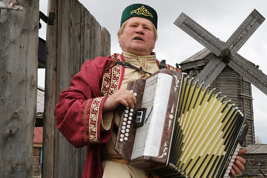 Без лишних прелюдий он начал наше погружение в национальную атмосферу, исполнив песню под гармошку песню "Туган тель" ("Родной язык") на стихи Габдуллы Тукая.
