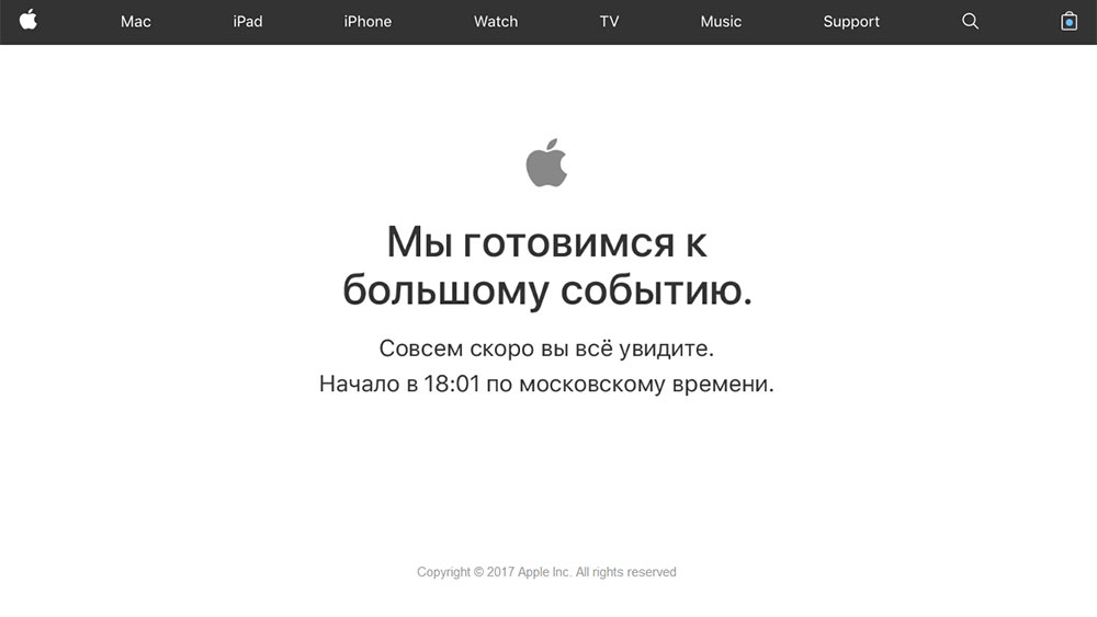 Посетителей ресурса встречает "заглушка" с текстом: "Мы готовимся к большому событию. Совсем скоро вы все увидите. Начало в 18:01 по московскому времени".