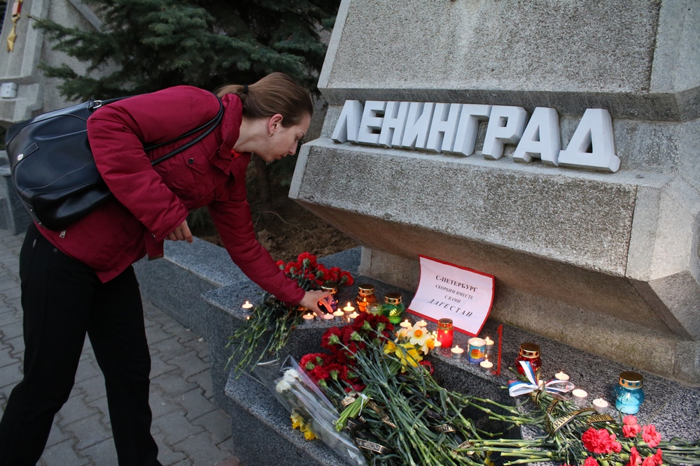 Жители Севастополя весь вечер приходят к стеле Ленинграда на аллее городов-героев, чтобы выразить соболезнования семьям погибших от взрыва в петербургском метро. Люди приносят к памятному знаку цветы и зажигают свечи.