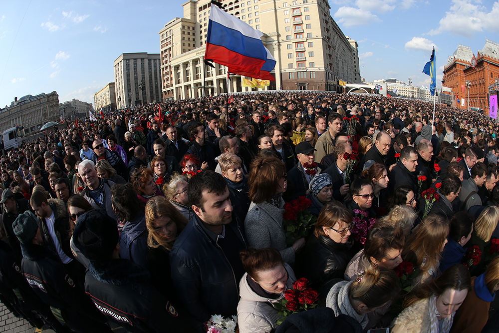 На Манежной площади в Москве проходит акция памяти и солидарности "Питер, мы с тобой".