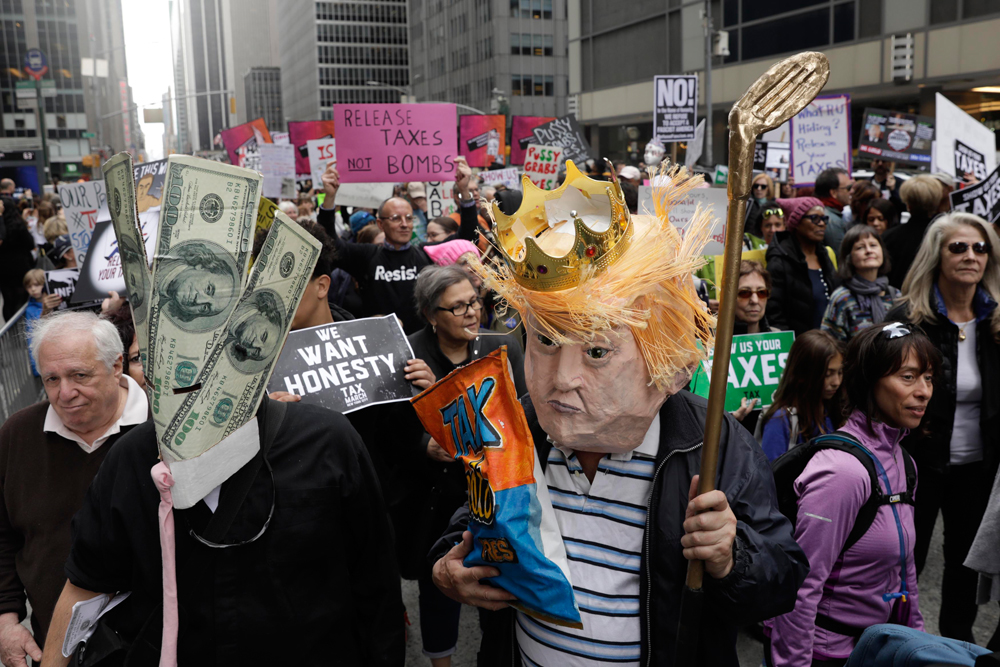 Оппоненты Трампа утверждают, что если президенту нечего скрывать, он должен обнародовать свою налоговую декларацию. В противном случае, утверждают некоторые участники акции, в его бизнесе могут быть незаконные или сомнительные инвестиции.