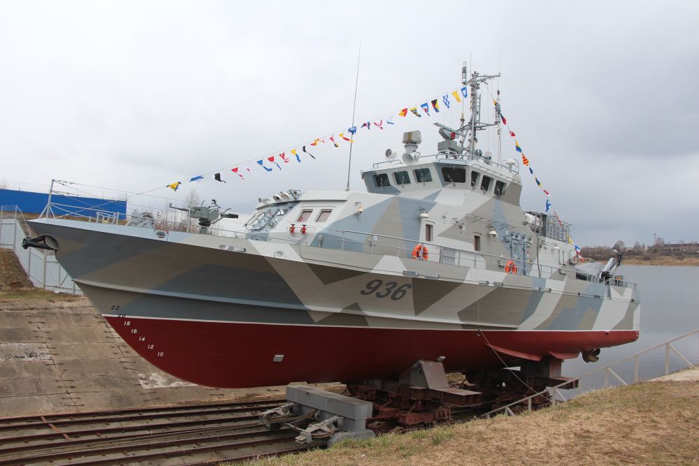 На судостроительном заводе в Рыбинске на воду спущен третий противодиверсионный катер проекта 21980 "Грачонок", построенный по контракту с Министерством обороны.