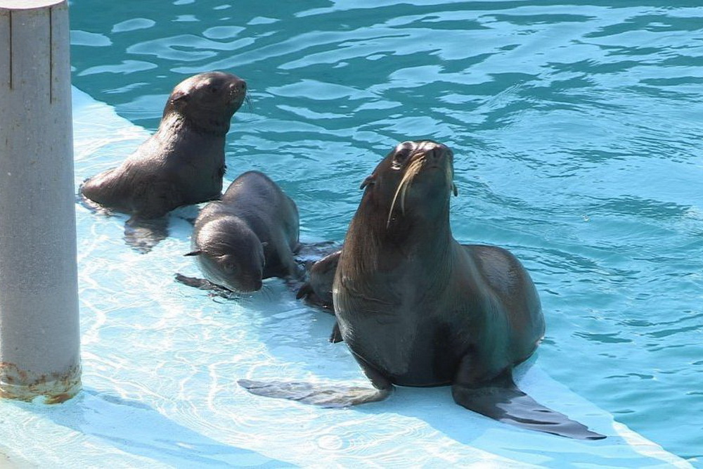 Сейчас малыши весом по 10 килограммов каждый живут в вольере со своей мамой и питаются только ее молоком. С сентября в их рацион начнут добавлять рыбу. Имена морским котикам пока не придумали.