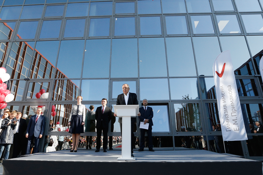 Министр иностранных дел России Сергей Лавров принял участие в открытии Областной гимназии имени Е. М. Примакова в деревне Раздоры Московской области и выступил на торжественной линейке.