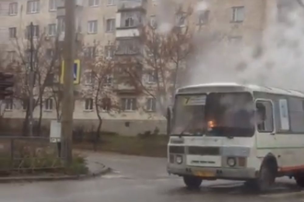 Водитель легкового автомобиля при помощи мобильного телефона заснял, как по встречной полосе едет горящий автобус. Ролик разместил в соцсетях, и он быстро начал набирать популярность. Автор сообщает, что инцидент произошел утром 3 ноября в Орле. Огонь охватил кабину автобуса "ПАЗ". Однако водитель этого словно не замечает и спокойно продолжает движение.