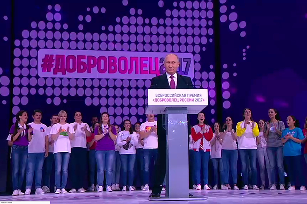 Президент России Владимир Путин принимает участие в церемонии вручения премии "Доброволец России-2017". Мероприятие проходит во дворце спорта "Мегаспорт".