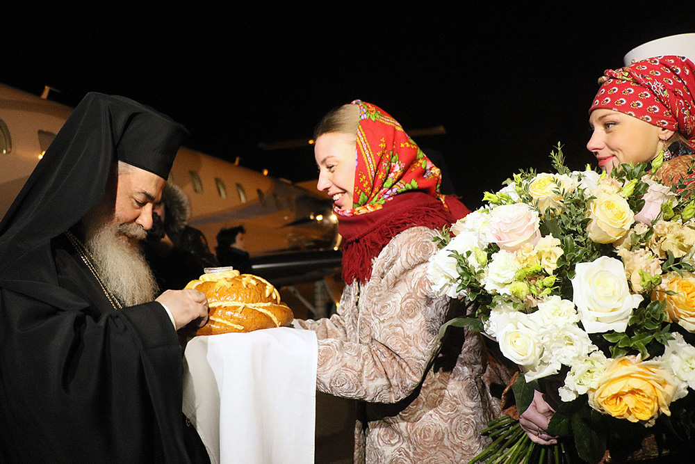 В екатеринбургском аэропорту гостя встретили хлебом и солью.