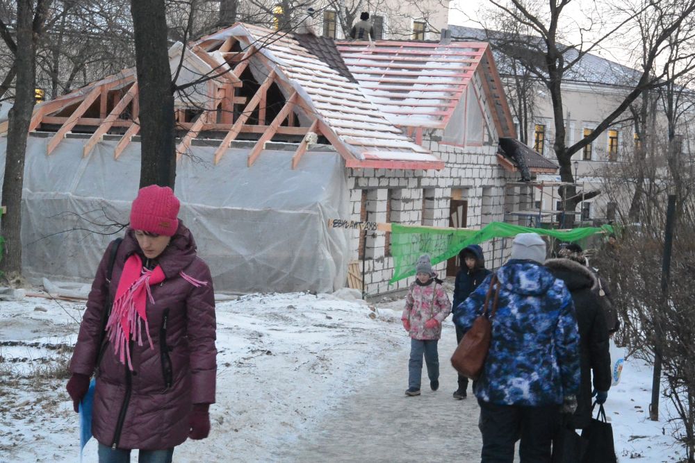 Именно здесь сосредоточены главные святыни города - Спасский собор, епархиальное управление и с десяток исторических зданий. Однако это не помешало частному лицу, фамилия которого не разглашается, прибрать к рукам часть сквера, возвести двухметровый кованый забор и начать строительство объекта неопределенного назначения.