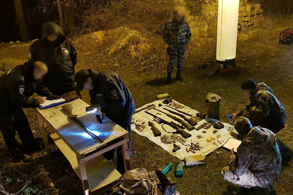 По сообщению пресс-службы МВД по Республике Крым, неизвестные лица хранили вблизи села Соколиное карабин с оптической установкой и прибором бесшумной стрельбы, винтовку "ТОЗ-8", охотничье ружье 16-го калибра, обрез охотничьего оружия 16-го калибра, 448 патронов разного калибра, а также запчасти от оружия. Помимо этого в отдельной металлической коробке были припасены охотничий порох и учебно-тренировочная граната Ф-1.