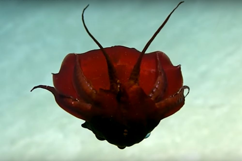 Ученые предполагают, на видео попал представитель таинственного вида Discoteuthis discus. Ранее такие существа живыми не ловили. Впрочем, и сейчас у исследователей есть только фото и видео, но нет пойманного живого экземпляра. Также не исключено, что камера засняла новый вид.