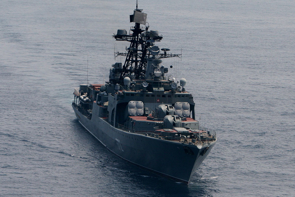 Большие противолодочные корабли Приморской флотилии разнородных сил Тихоокеанского флота "Адмирал Виноградов" и "Адмирал Трибуц" в ходе двустороннего тактического учения поразили крылатую ракету-мишень. Как сообщили в пресс-службе Восточного военного округа Минобороны РФ, моряки применили зенитно-ракетный комплекс самообороны "Кинжал".