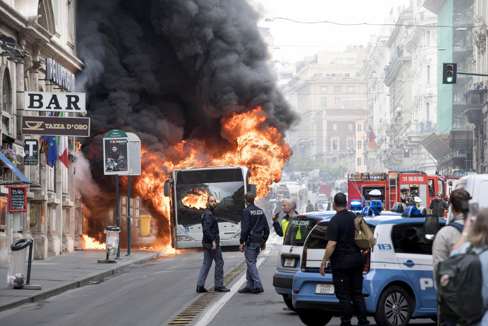 В историческом центре Рима, на виа Тритоне, загорелся и затем взорвался автобус столичной транспортной компании ATAC.