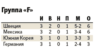 Впрочем, Мексику эти нюансы мало волновали, поскольку благодаря лучшей разнице забитых и пропущенных мячей шведы обогнали соперника и вышли в лидеры группы. Последние 15 минут встречи мексиканцы балансировали на грани, рискуя откатиться и на третье место, но в зоне плей-офф все-таки удержались.
