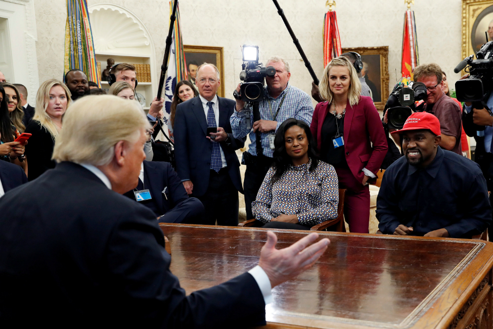 Президент США Дональд Трамп принял в Овальном кабинете рэпера Канье Уэста, с которым побеседовал о тюремной реформе и сохранении рабочих мест. На встрече присутствовали дочь американского лидера Иванка Трамп и ее муж Джаред Кушнер.