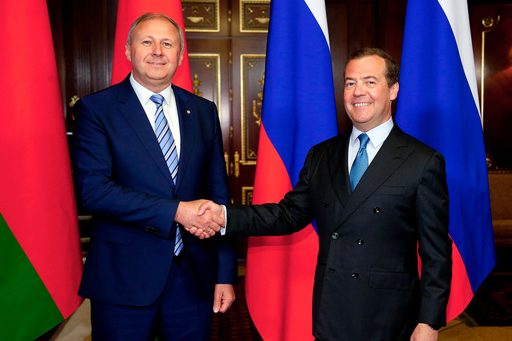 Очередная встреча глав правительств Союзного государства предусмотрена в конце июня. Премьер-министр РБ Сергей Румас и председатель правительства РФ Дмитрий Медведев договорились продолжить конструктивный диалог в белорусской столице во время II Европейских игр. Об этом премьер Беларуси сообщил по итогам рабочего контакта с председателем правительства РФ в Москве 24 мая, передает БЕЛТА.