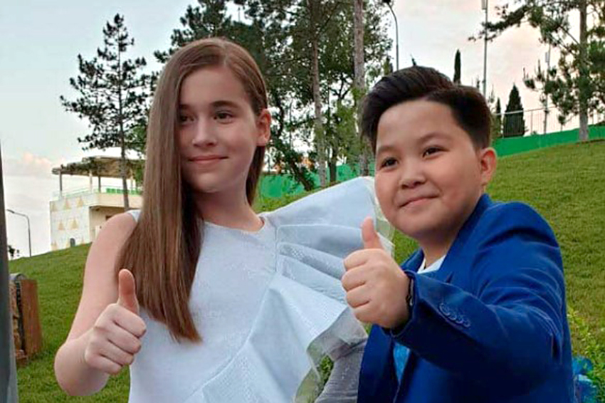 В МДЦ "Артек" бывшие соперники музыкального конкурса "Голос. Дети" дочь певицы Алсу Микелла Абрамова и Ержан Максим исполнили дуэтом песню "Это любовь".