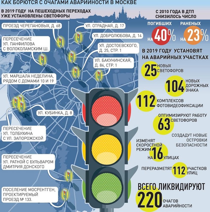 Еще до конца года на опасных участках дорог появится 112 новых комплексов фотовидеофиксации (всего в городе будет 600 новых комплексов), создадут новые островки безопасности, переразметят 112 участков улиц и установят более 100 новых дорожных знаков.
