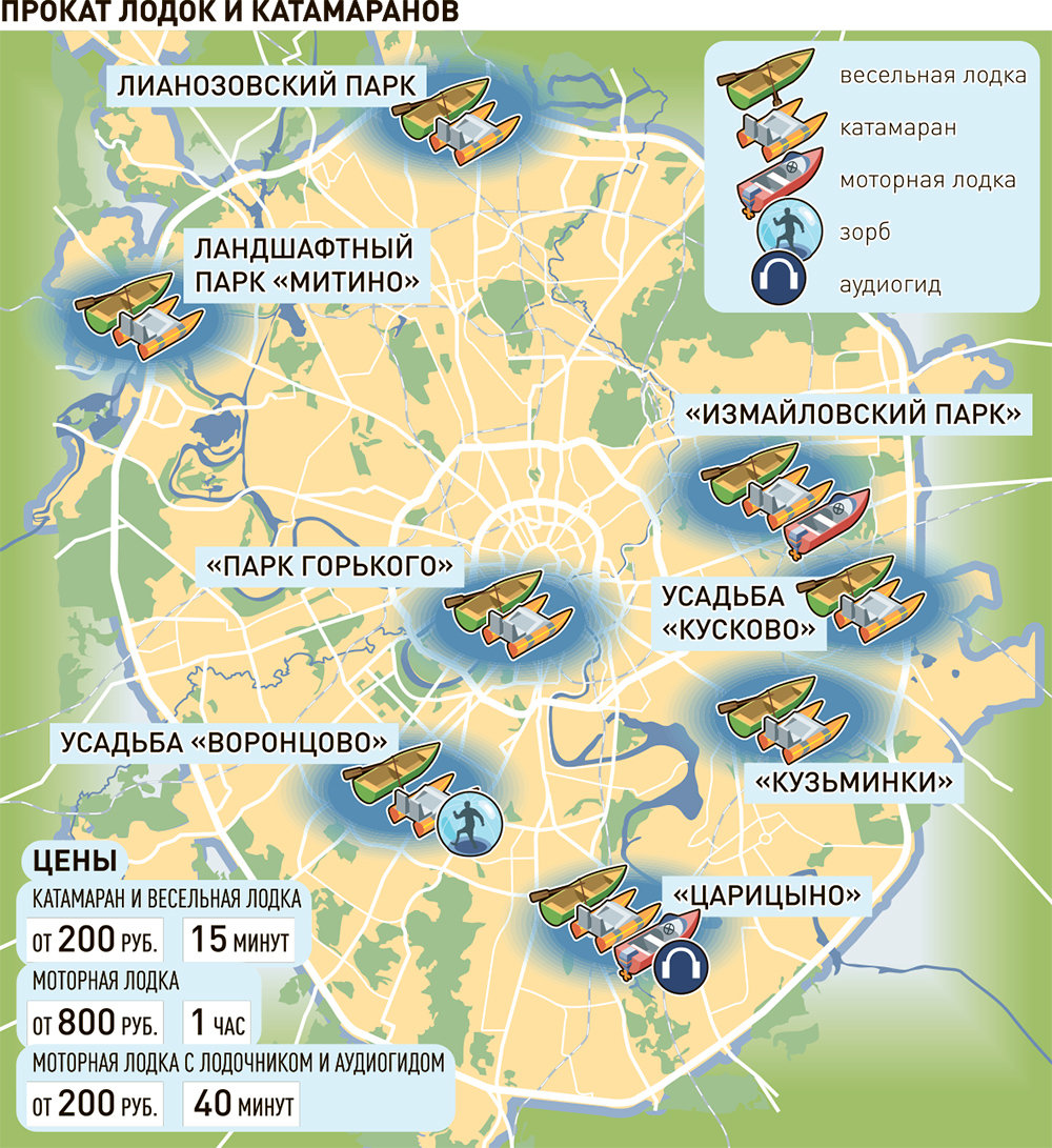 В некоторых парках с тех, кто берет в аренду лодку или катамаран, попросят залог. На всякий случай берите с собой дополнительно 1-2 тысячи рублей. И еще перед выходом настоятельно рекомендуем звонить в парки, если на улице дождь. В плохую погоду лодочные станции могут не работать. Впрочем, по прогнозам синоптиков, в июле нас в основном ожидают тепло и солнце.