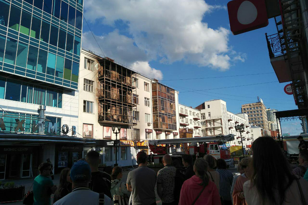 В Екатеринбурге на пешеходной улице Вайнера горит жилой дом.
