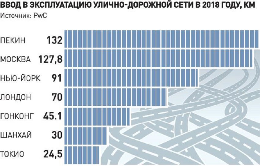 По данным аналитиков, в прошлом году в эксплуатацию сдано почти 128 километров улично-дорожной сети. В Пекине было построено 132 километра дорог, в американской столице - 91 километр. Ранее и московские власти отмечали, что дорожное строительство в 2018 году побило рекорды предыдущих лет. Ключевым проектом для столицы остается сооружение Хордового кольца. Уже построена Северо-Западная хорда, на 80 процентов готова Северо-Восточная, активно строится Южная рокада, начинаются работы на Юго-Восточной хорде.