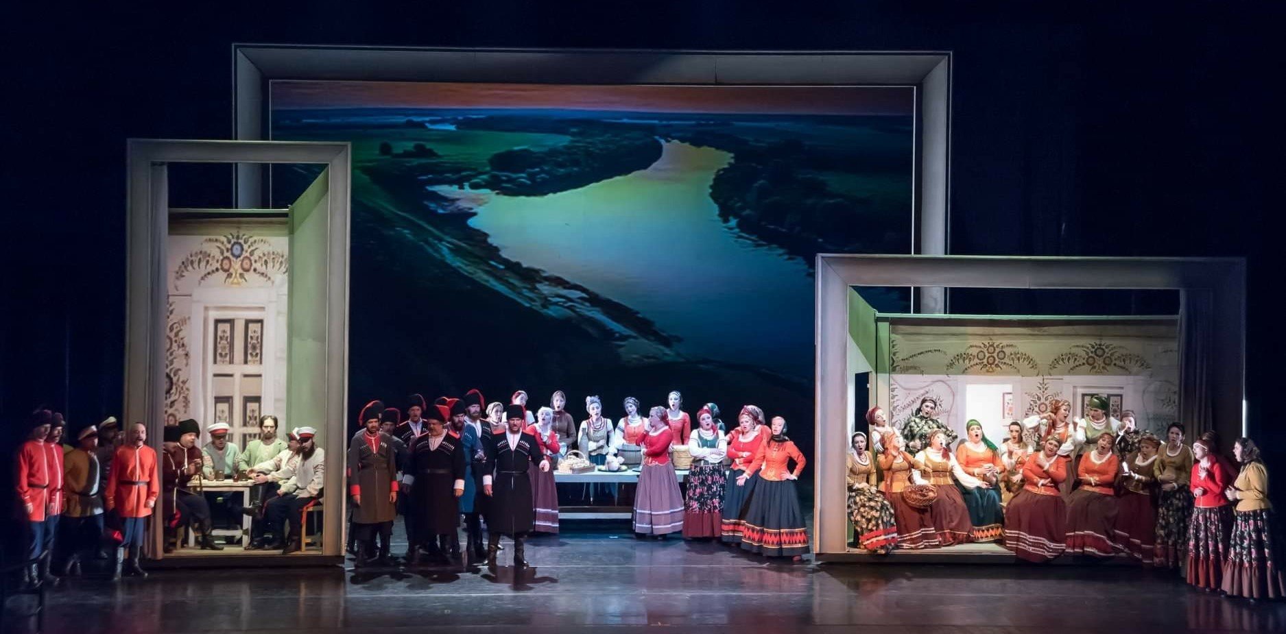 Массово-батальные сцены Александр Чайковский создает посредством ярких симфонических эпизодов, что в спектакле худрук театра Сергей Бобров превращает в этно-характерный танец, метафорично представляющий кровавое противостояние казаков и тюркских воинов. При этом сцена залита фантасмагорическим светом (светохудожник Ирина Вторникова). А в целом, мелодический язык Александра Чайковского продолжает эстетику Мусоргского, Римского-Корсакова и Прокофьева, хотя очевидно основан на современной стилистике и сегодняшнем инструментарии. И не скрывает некоторого стремления, например, к диссонансности и расширенной тональности, что доставляет немало трудностей певцам, которые очень стараются, осознавая всю ответственность момента мировой премьеры.