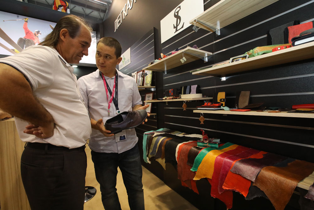 На международной выставке "Иннопром", которая завершается сегодня в Екатеринбурге, показали выделанную рыбью кожу и материалы из нее.