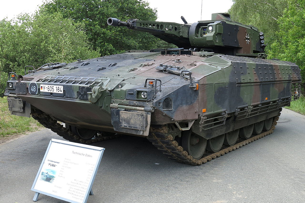 Puma - боевая машина пехоты Германии. Ее масса - 43 тонны. Экипаж - три человека и десант - шесть военнослужащих. Она стоит на вооружении с 2015 года. Изначально планировали выпустить 410 БМП. Но потом их количество сократили до 350, цена каждой - до семи миллионов евро.