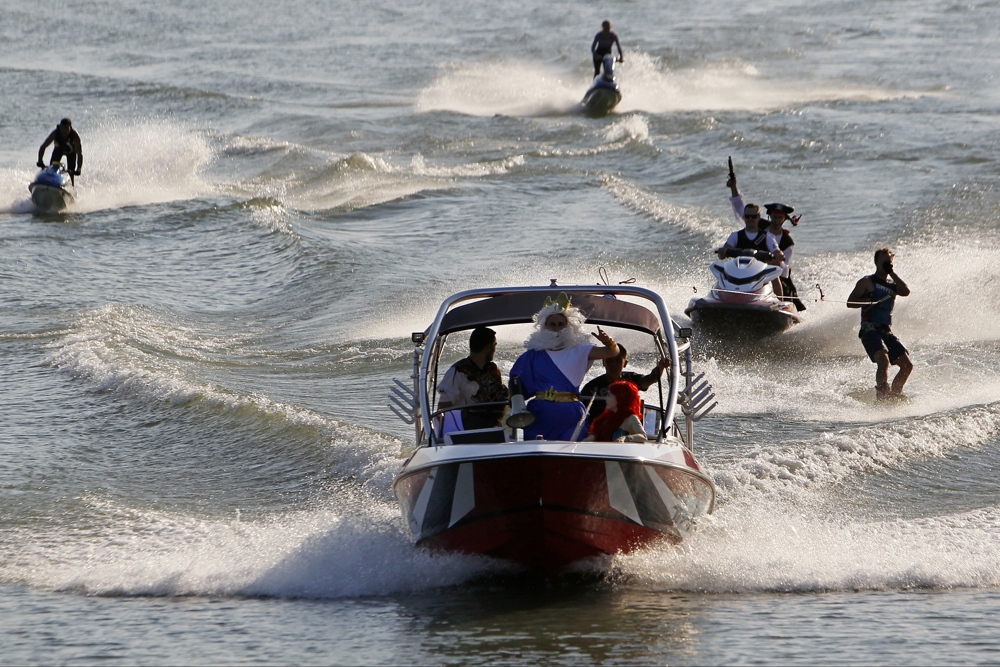 На территории Солнечного острова в устье реки Кубань в Краснодаре 20 июля прошло водное шоу, за которым наблюдали сотни горожан. Главным участником праздника в теплый и солнечный день стали вода и люди. Так Краснодар впервые массово отметил праздник бога морей и океанов Нептуна.