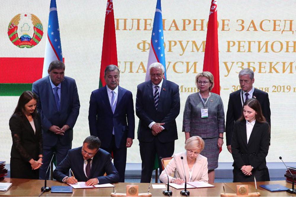 Пакет межрегиональных документов о сотрудничестве был подписан во второй половине дня по итогам работы деловых партнеров СНГ. Cоглашения о кооперации в торгово-экономической, научно-технической и гуманитарной сферах подписали Гомельская область с Ферганской и Хорезмской областями, Гродненская - с Самаркандской и Андижанской, Витебская - с Наманганской, Брестская - с Бухарской и Сырдарьинской областями.