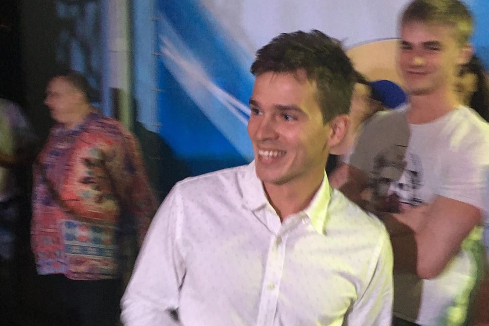 "Страна, радуемся все вместе, потому что солист группы "Ласковый май", который уже более двенадцати лет работает с нами, сегодня стал отцом во второй раз. Ура, ура, ура!", - торжествует Разин активно.