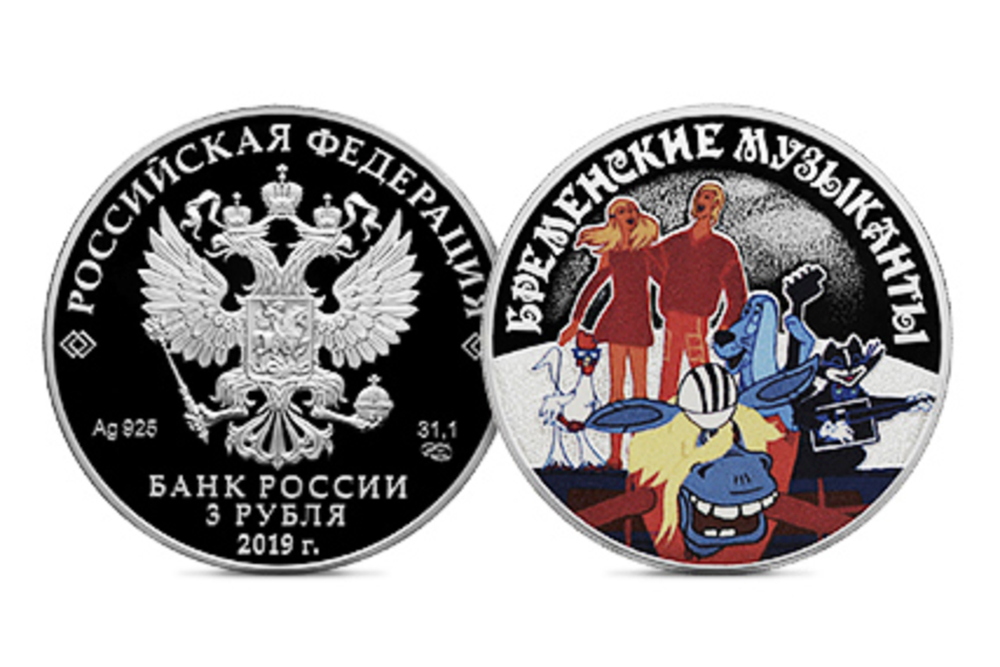 В понедельник, 12 августа, Банк России выпускает памятные монеты, посвященные мультфильму "Бременские музыканты", серии "Российская (советская) мультипликация". Об этом сообщается на официальном сайте регулятора.