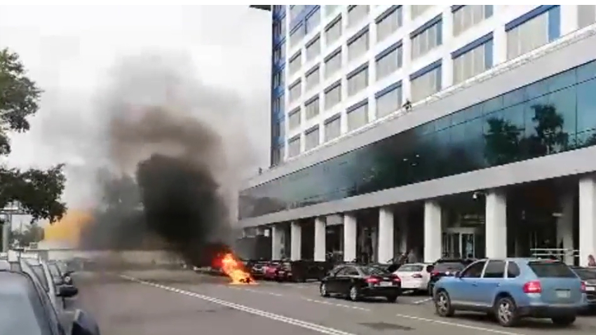 Видео: В центре Москвы посреди улицы сгорел мопед