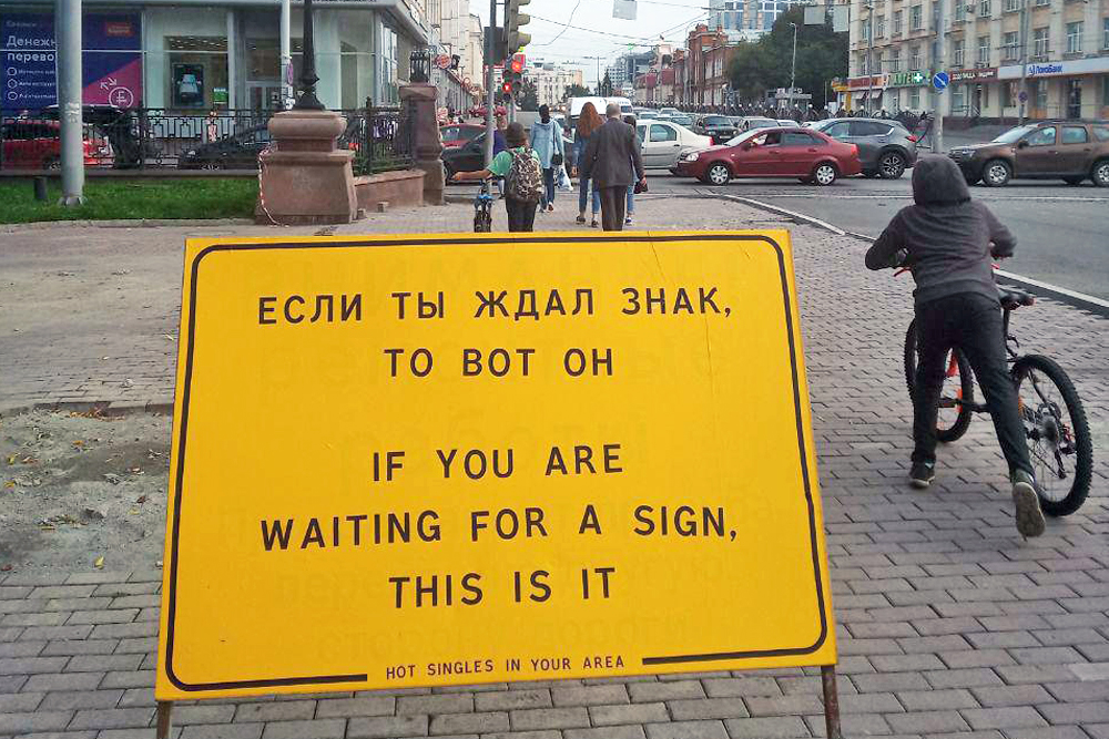 Художники из команды Hot Singles In Your Area установила на проспекте Ленина в Екатеринбурге необычные дорожные знаки.