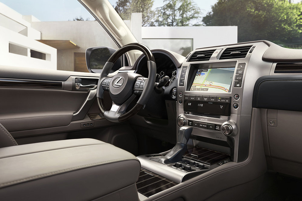 Также пополнился перечень внедорожных помощников. Теперь внедорожник можно заказать с четырьмя камерами, установленных по периметру кузова, системой помощи при движении по бездорожью (Multi-Terrain Monitor) и системой кругового обзора (Panoramic View Monitors). Обновлённый Lexus GX 460 обзавёлся селектором выбора работы ездовой электроники Multi-Terrain Select.