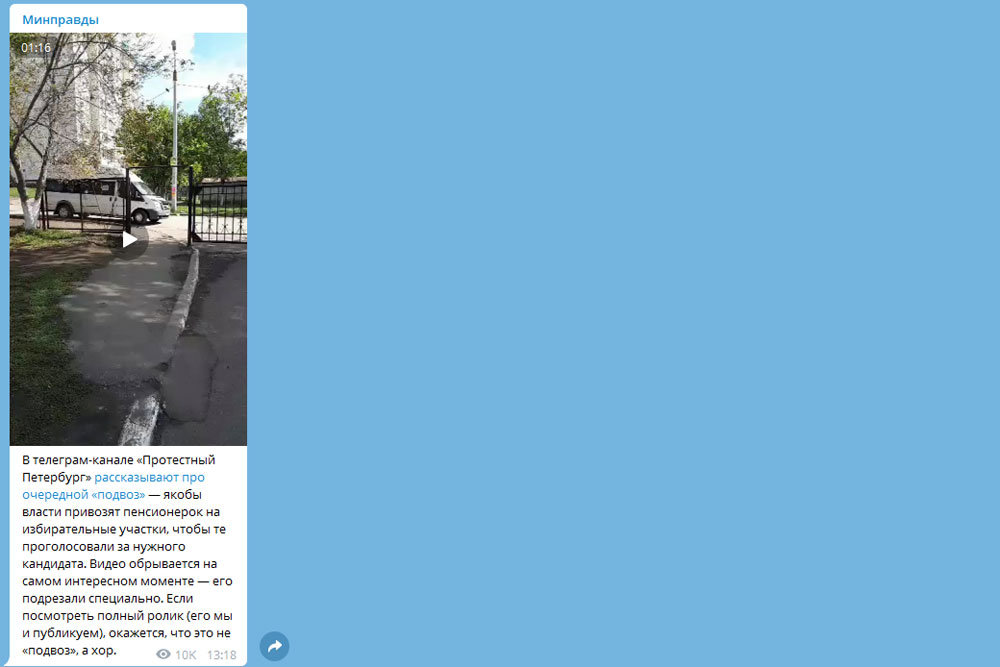 Помимо уже ставшего мемом автобуса с хором, который выдали за подвоз избирателей, не подтвердилось сообщение о раздаче в помещении УИК 1047 избирателям обложек на паспорт с агитацией. "Бесстыжие фейки", - пишет Александр Брод.