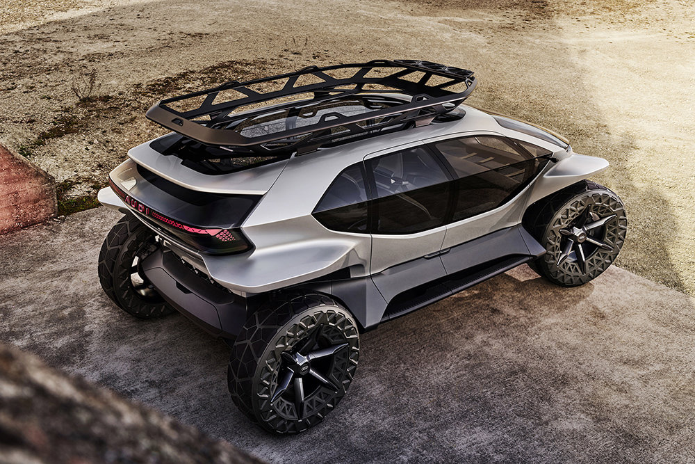 Audi привезла на автосалон во Франкфурте концептуальный внедорожник AI:Trail quattro, который оснащён четырьмя электромоторами, дорожным просветом с французского бульдога и кабиной, напоминающей вертолёт.