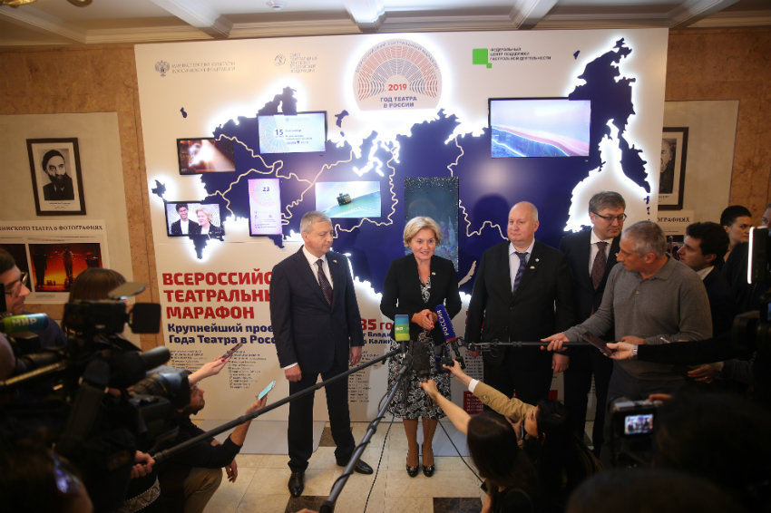 Все - это имеется в виду Всероссийский театральный марафон, который стартовал в январе во Владивостоке, завершится в конце года в самой западной точке страны - в Калининграде, итоги подведет во время Международного культурного форума в Санкт-Петербурге, и за Год театра охватит все 85 субъектов Российской Федерации. Объединив - познакомив друг с другом театральные коллективы всех соседних регионов. По театральной эстафете на гастролях передающих специальный символ Года театра следующему театру. На сегодняшний день участие в нем приняли 74 города, около ста двадцати региональный театров, более полумиллиона зрителей и - так или иначе - практически большинство всех тех, кто имеет профессиональное отношение к театру и кого Всероссийский театральный марафон уже настиг "географически".