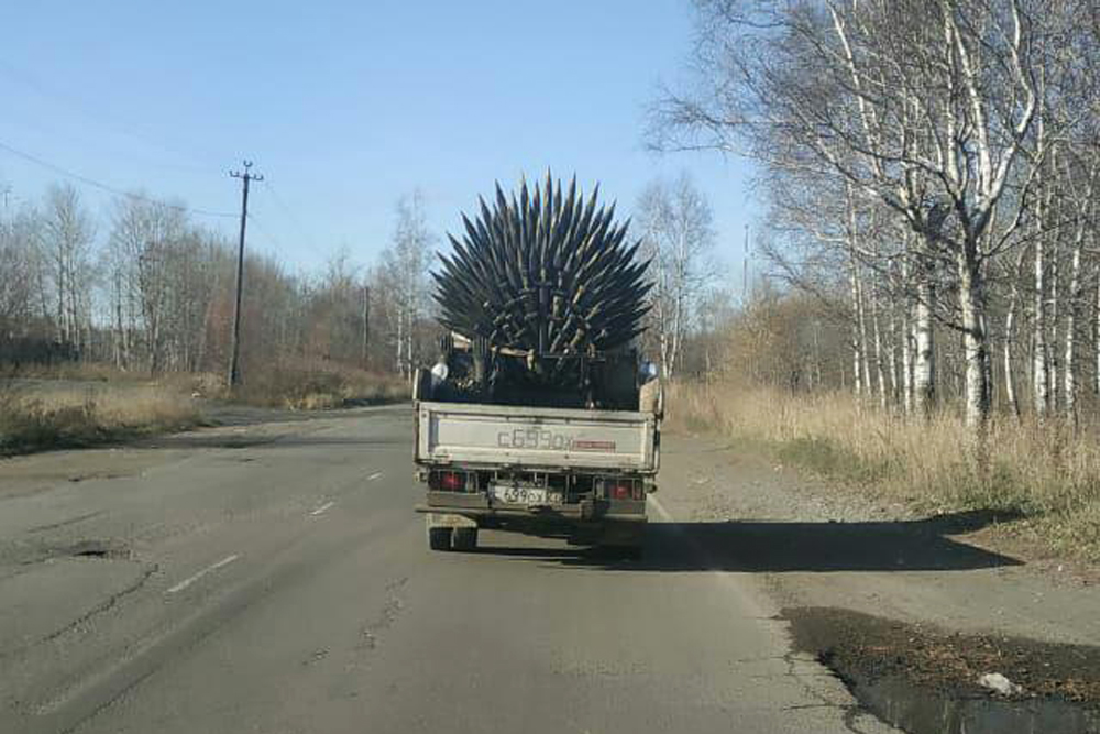 В Комсомольске-на-Амуре заметили трон, похожий на тот, что показывают в сериале "Игра престолов". Его везли по трассе на грузовике.